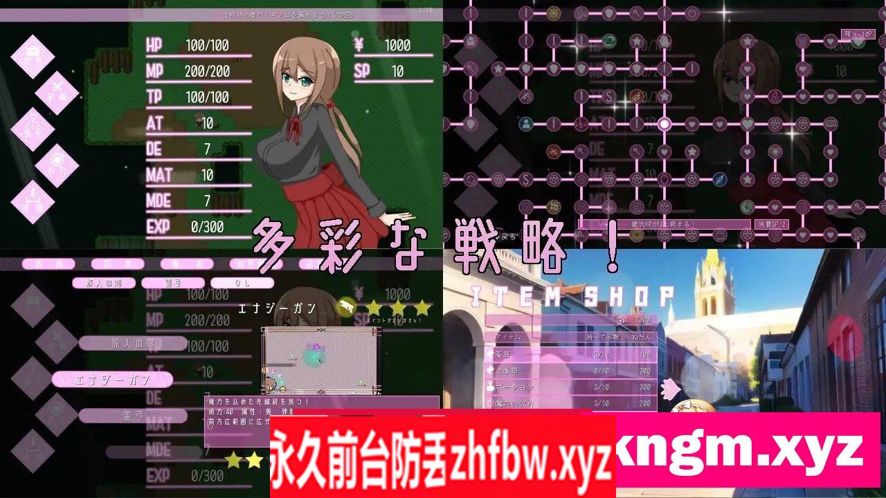 该翻译补丁由[butoa]大佬制作分享 怪异世界是什么样的游戏!? 在充满魔物、幽灵及各种怪异现象的世界中,操作性感的主角进行冒险的动作RPG游戏! 剧本共分为5章! 故事以各章节独立完结的单元剧形式展开,各章节中出现的准主角们将推动故事发展! 主角 操控时间的沉默冒险者 {玛云} 魔法与现代科学、各种可能性交织的异变世界中冒险的沉默少女。 能够使用操控时间的魔法! 此外还精通各种武器及不同属性的魔法! 非常喜欢吃东西! 游历世界,被魔物、幽灵等怪异现象卷入,编织出各种故事。 滑溜溜的H场景! 异变世界中会出现魔物、史莱姆、幽灵乃至吸血鬼等各种敌人! 体力耗尽就会被敌人袭击! H场景共有50种以上,全部为手绘动画! 支持画廊解锁功能! 爽快的动作! 运用武器和魔法进行战斗的爽快动作! {武器} 种类繁多,包括剑、弓等! {魔法} 消耗MP可发动强力攻击及恢复! {结界} 影响全体敌人的结界魔法! 包括时间停止、伤害反射等! {必杀魔法} 以动画形式呈现的必杀魔法! 使用时机至关重要! 多样的战略! 通过技能树强化主角! 在商店收集喜欢的装备吧! 游戏规格 ■ 类型 动作RPG ■ H场景数 50个以上 ■ 系统 支持回想(画廊解锁功能)、消息、电影跳过 ■ 预计游戏时间 5~10小时左右 ■ 制作工具 wolf rpg编辑器