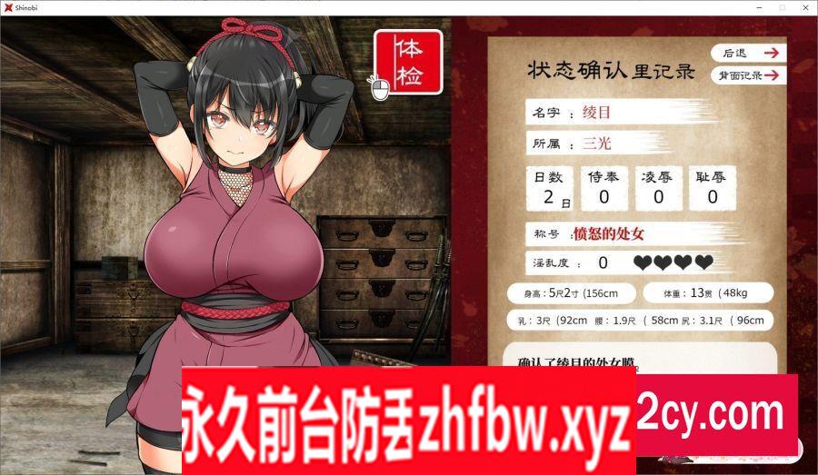 游戏故事: 游戏时间发生在日本的战国时代。 我方阵营幸运地将被誉为“最强女忍”的敌方少女“绫目”地抓住了。 然后男主被上头这样命令道:“条教女忍者绫目酱,让她彻底投降吧!” 于是乎,男主开始了对这个强大而可爱的女忍者进行各种エロ的教育…