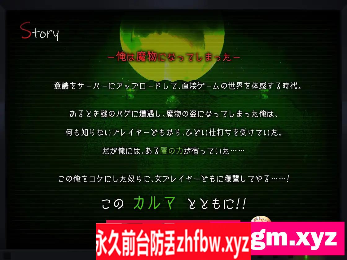 sstm 印证、神风椋鹰 一起 汉化 PS:开头输入姓名要是输入不了可以复制一段文字然后粘贴(Ctrl+V) 『游戏概述』 这是一款由[とらいあんぐる]制作组出品的大型日式RPG游戏 该组曾经制作过海贼姬,PrincessProject等年度作品 这次的新作质量也是直接拉满!发售之后直接登顶 游戏设定非常有趣的大型RPG游戏 全动画,全语音,全互动,有着4.9G的超大容量 整体画风精美,事件丰富! 游戏玩法也是进化转生,战斗俘虏内容~ 游戏剧情: 我变成了魔物…… 这是可以将意识上传到服务器,直接用力灵魂感受游戏的时代 像往常一样沉迷于网络游戏的我,在一次新游开服时候遇到谜一样的bug 导致我的账号,彻底的变成了游戏里面的[魔物] 不能下号也不能和其他角色聊天,只能像真正的魔物一般生活在虚拟世界中 但我也莫名其妙拥了有“破坏这个世界规则的力量” 那些把我当成魔物,欺负我羞辱我的家伙, 我要向她们复仇……! 游戏系统: 魔物开局的疯狂生活: 主人公是一只魔物,自然是混乱邪恶阵营,所以行事准则想必大家都懂 攻击其他玩家、偷窃、恶作剧、抢劫、甚至……如果对象是女玩家的话…… 挂之系统: 做的坏事越多,『カルマ』的容量就会越高,解锁各种疯狂的功能 禁锢她人灵魂强制无法下线。同步感度百分百享受痛苦,或者更多奇妙玩法 转生系统: 从最低等的史莱姆起,每次被干掉后都可以重新转生,『カルマ』越多可以转生的种族越强 绿皮兽人,嗜血丧尸,禁忌缝合怪,龙裔血魔,10种可以转生的种族,越来越强大! 全程动态系统: 立绘,互动,战斗,系统,所有的场景都是超高质量动态! 全程60帧带你享受丝滑异世界(黑暗限定款)