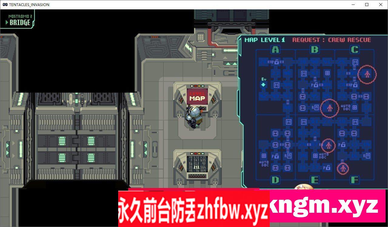 「触手外星人救援任务」是一款宇宙船内探索型射击动作游戏 地球返航中的宇宙货船诺斯特罗莫2号。 船员维罗妮卡·温泽被紧急情况从冷冻睡眠中唤醒。 船内充满了未知生物,无法与9名船员取得联系。 在电脑“HOLLY9000”的请求下,维罗妮卡展开了救援行动。 说明书 ●操作 方向键:光标 移动 B按钮:Z键 武器攻击 A按钮:X键 切换内外摄像头 START按钮:空格键 暂停(PAUSE) 按住攻击按钮时,攻击方向固定。 (可以边向后退边向前攻击。) ●损伤 受到攻击时,服装的耐久度会减少,触手外星人会侵入服装内部。 继续受到攻击,服装内的外星人会暴动,增加性感度(%)。 性感度达到100%时进入高潮状态,超过999%则会失去意识并GAME OVER。 ●其他 救援船员后返回舰桥。 在标题画面按下秘密按键可进入实验室(画廊模式)。 ●道具 箱子[F] 火焰喷射器。 箱子[S] 强化步枪子弹。 箱子[+] 最多可持有3个的性感度中和剂。性感度超过100%时会掉落。 被困船员的随机生成 除去2名科学家和主角外的7名船员,每次“NEW GAME”时,脸型、发型和被捕姿势等会随机生成。