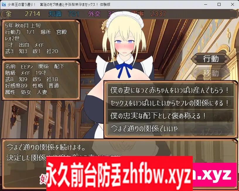 ____simple_html_dom__voku__html_wrapper____>少年王の言う通り!~宮廷のモブ娘達と子孫繫栄孕ませックス!~ 『游戏概述』 随机生成丰满巨乳的雇员们和进行生孩子的性行为!一切都是为了王国和王朝的延续! ◆游戏说明 这款游戏是一款国王模拟游戏。 您是曾经打败魔王的家族后代,但…。 由于被魔王施加了短命的诅咒,您比其他人寿命更短。 通过与宫廷的雇员们生孩子,继续王朝的延续,并努力完成不死药。 出现的雇员完全是随机生成的! 外观当然也是,能力值、性格、属性等都是随机生成而确定的。 然后,请与这些雇员进行生孩子的性行为,继续传承王位! 能力高的雇员会生出能力高的后代,但这取决于您的喜好! 可以根据外表进行招募,只招收处女或已婚妇女,只招收萝莉控的女孩…。 因为这是国王模拟游戏,您可以随心所欲地对待这些女孩们! ◆情节 勉強おおきいショタ王とぽちゃぽちゃ父親の職場で、子作りしましょう、子供をたくさん! 处女互夺、寝取り、萌声音、产生气体、怀孕、母子相奸,均有。 孕肚,无。 以夫为主,大生殖器。 有些雇员可能会抗拒,也有一些雇员愿意进行恋爱性行为。 ◆系统等 这是一款使用RPG Maker MZ制作的模拟游戏。 是一款国王模拟游戏。 试玩版可以玩约30分钟至1小时。 包括摸索系统、传承孕育系统等在内。 基本上,可以使用鼠标进行操作。 AI使用部分 背景是使用AI生成的图像,进行了部分调整。 游戏基础系统 游戏中有4种资源,如屏幕所示。 金钱、知识、外交、军事这4种。 金钱是最重要的资源,没有它国家无法运转。 用于雇佣人员,用于内政建设和维持人才。 知识是与游戏完成相关的资源。 通过完成技术树,完成不死药来完成游戏。 之前的技术和文化也能够用于强化王国。 外交能够影响与人相关的政策等。 其中,通过消耗外交进行的会面 可以雇佣到一些平时无法见到的人。 军事是用于击退入侵或平定叛乱的必要资源。 目前阶段,国民发动叛乱的可能性很低,因此 军事资源主要用于击退入侵的蛮族。 资源可以通过提升个人能力、 雇佣人才等方式增加。 与宫廷的雇员们的生活 根据国王子孙繁荣法,除了一部分外,所有雇员都可以生孩子。 雇员们参与王国管理,可以增加王国资源。 骑士以武力、学者以知识、商人以政治、女仆以社交,这些都是高度的。 王国的财政状况会参考这些。 即使有高武力的学者,军事数值也不会提高。 通过提高部下的好感度,可以成为怀孕的妻子或情人。 如果是为您生孩子的女性,当然会成为母亲! 所有雇员都是完全随机生成的,外观当然包括能力值、年龄、属性、性格等都不同。 收集您喜欢的部下,享受与雇员们一起的后宫生活吧!