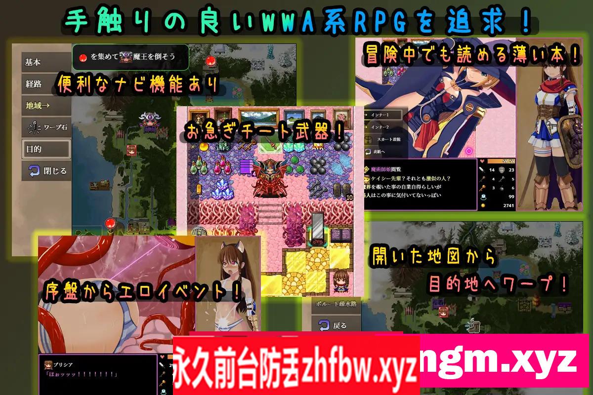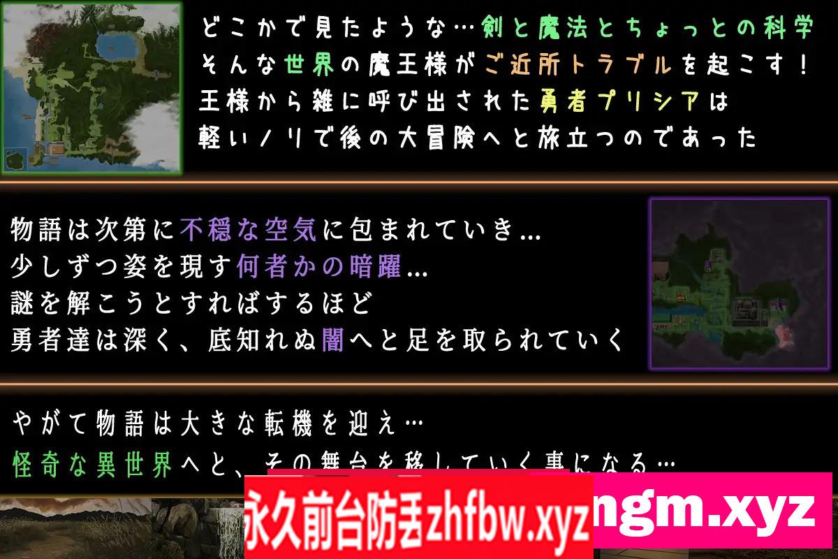 ____simple_html_dom__voku__html_wrapper____>『游戏概述』 简单的设计…却充满了冒险的乐趣! 本作是一个由体力、攻击力和防御力三种属性构成的非常简单的角色扮演游戏。 [故事] 有一天,勇者普丽西亚被国王召见,粗鲁地被命令消灭魔王。 在这种轻松的氛围中,普丽西亚的冒险故事开始了。 在冒险中,她会遇到各种人物并建立友谊。 本作的R18场景包括“在健康冒险中遇到的重要伙伴被淫荡的恶魔撕碎”的情节。 [战斗系统] 战斗是互相攻击,直到一方倒下为止的WWA形式,所以所有的单独战斗都将在“一个按钮”下决定结果。 [火热的冒险和Hack’n’slash] 敌人、道具和宝箱都会在返回城堡后重生。 您可能会迷恋于多次穿越相同的区域,但是这款游戏设计得越多冒险,收获就越丰厚。 跨越那些危险的桥梁…你将发现强大的武器和可爱的服装等着你。 冒险得越多,您可以前往的地方就越多! 阳光洒入的森林、峡谷、热闹的街道、港口城镇、沙滩、灯塔、湖泊、遗迹、雪原…! 启动游戏,即刻踏上冒险之旅。 附言 内裤类型并不是35种,而是33种。总装备数为147种。错误表述非常抱歉。